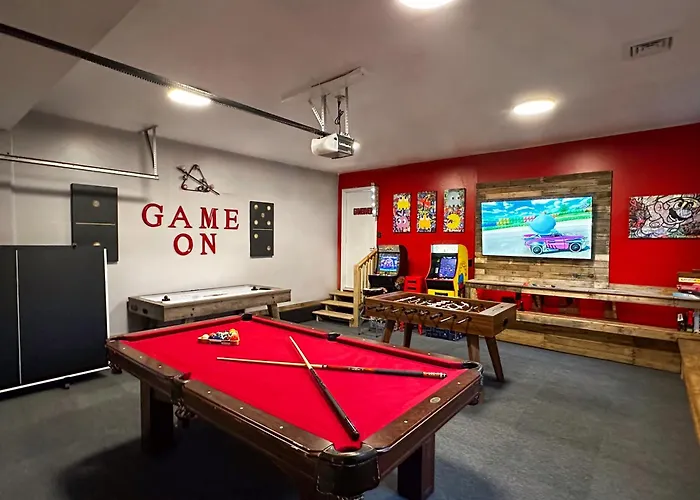 Positioned in the rolling hills of Tobyhanna, the Rustic Poconos Ranch W Game Room offers a harmonious blend of adventure and tranquility. This charming retreat is perfect for families and gatherings, providing a serene escape just 55 kilometers from Wilkes-Barre/Scranton International Airport. With its natural surroundings and recreational activities, it captures the essence of a classic Poconos getaway.